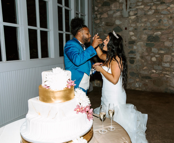 Castle Farms offers a few different indoor/outdoor locations for your ceremony and reception. Jora and Keenan chose the Knight's castle and courtyard for their wedding and needless to say, it did not disappoint! The two were perfectly framed by the castle's pointed arch with a crystal chandelier hanging just above them. The ceremony was short and sweet because little did everyone know... Jora and Keenan had a huge secret they had been keeping. They privately eloped in Vegas YEARS ago and never told a soul!